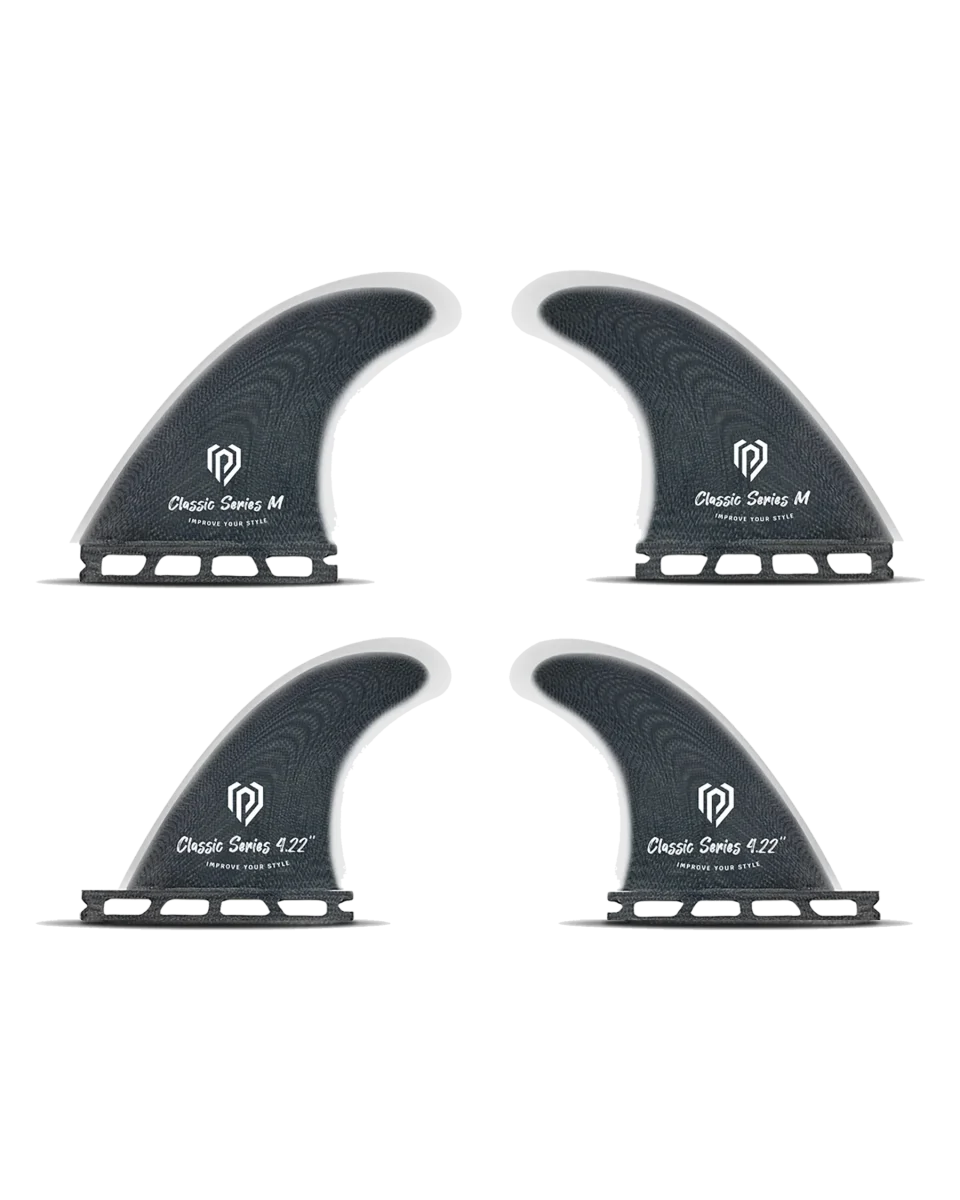 Notre set d’aileron Quad bénéficie d’un template tout terrain : simple, homogène et efficace pour rider en toute confiance. La construction en fibre de verre multi couche procure une sensation équilibrée pour un maximum de polyvalence et de la performance dans un large panel de conditions. Ce set de 4 ailerons vous apportera l’équilibre parfait entre vitesse et contrôle.