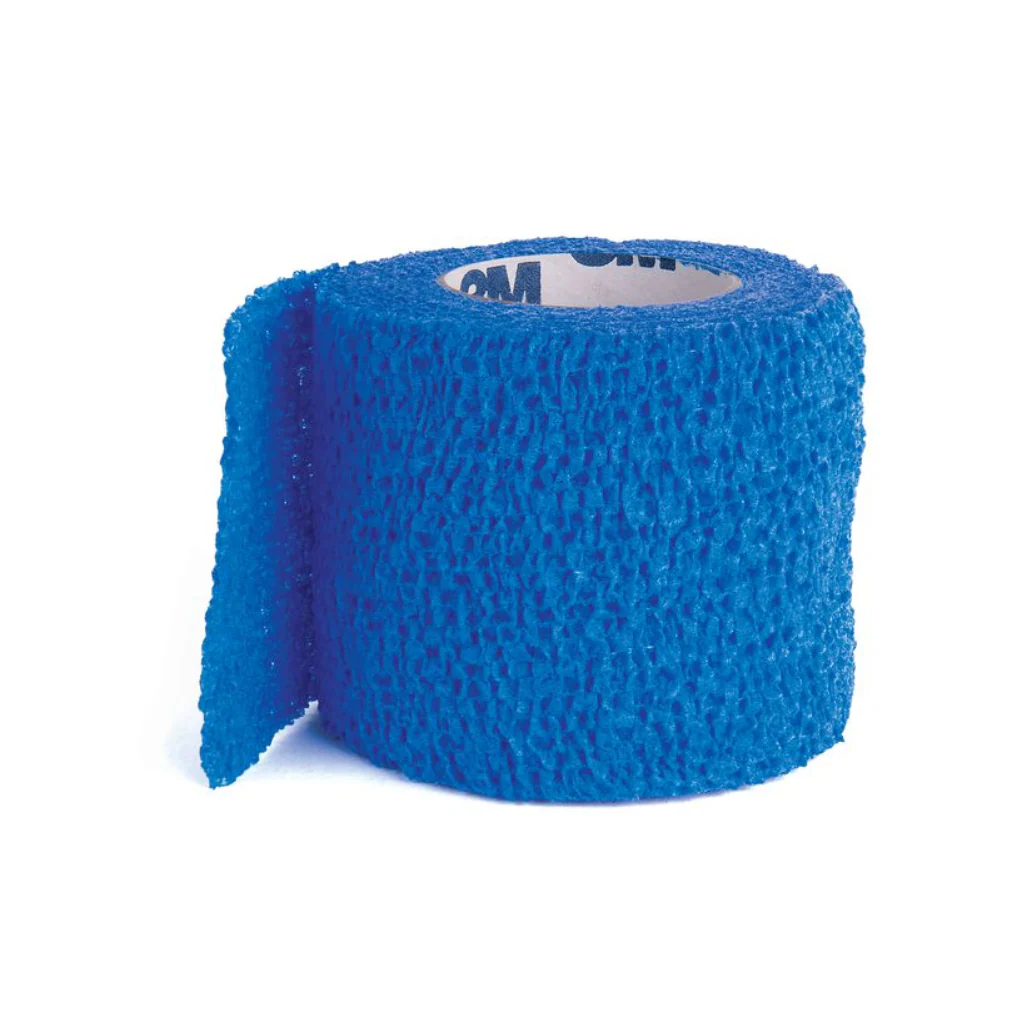 Bande cohésive élastique 3M. Se colle sur elle-même et non sur la peau. Support non-tissé avec latex. Hydrophobe. Pour tout pansement de contention. Coloris blanc ou chair, longueur étirée 4.5 m, soit 2 m non étirée.