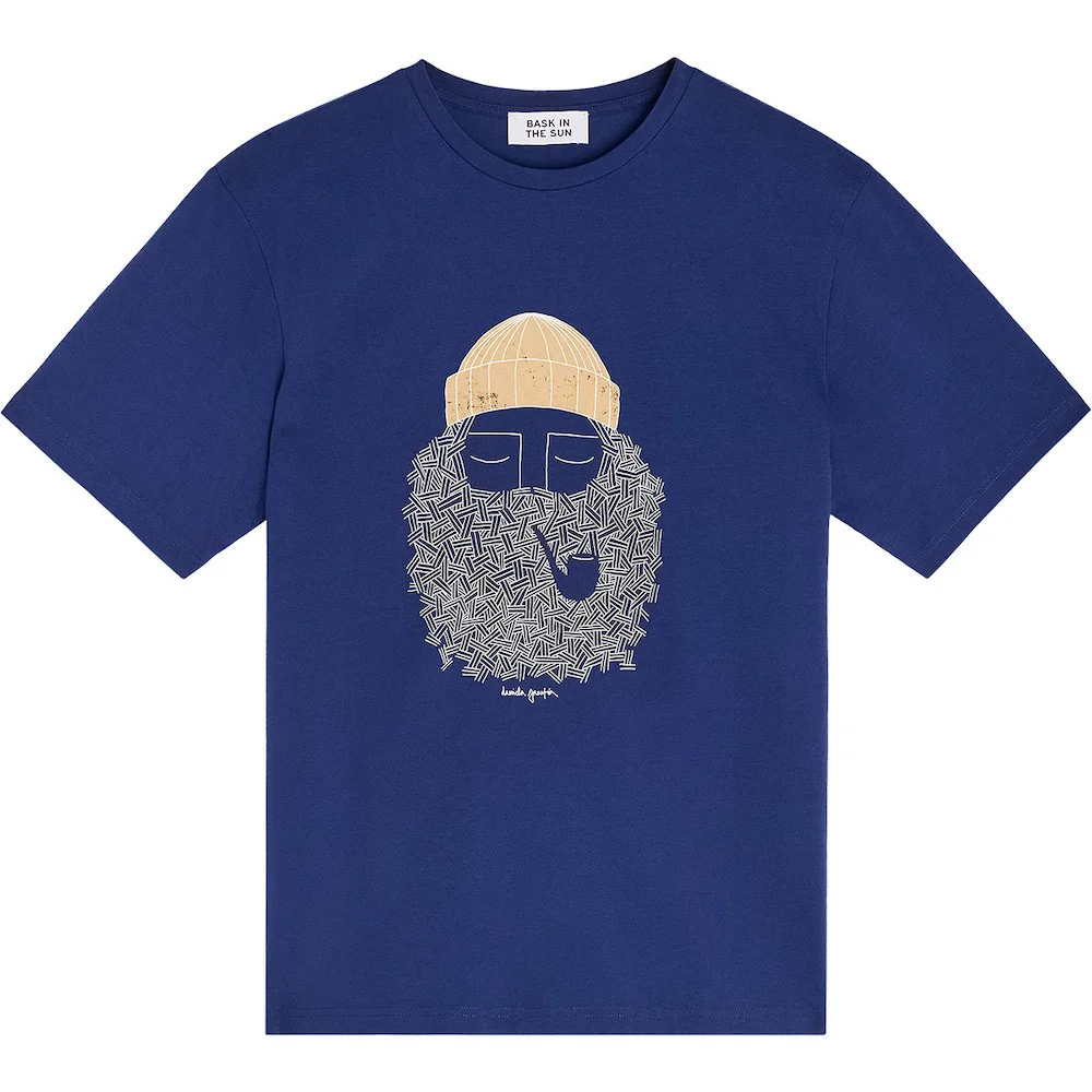 Impossible de passer à côté de l’esprit marin qui émane du tee-shirt Smoking Pipe abyss signé Bask in the Sun. Sa sérigraphie originale de Daniela Garreton évoque la mer, les figures de pêcheur, l’art de vivre au bord de l’eau. Le coton biologique épais apporte confort et durabilité, tout en conservant une belle fluidité. À porter avec un sweat ou sous une veste, c’est une pièce de caractère, typique de la marque basque.