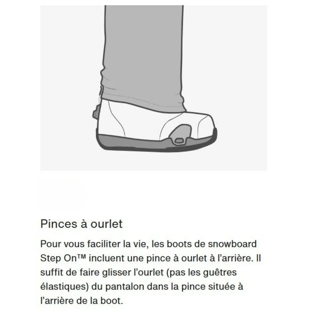 Le chausson Imprint™ 2 thermoformable épouse la forme du pied dès la première utilisation, offrant un confort durable sans rodage. La semelle extérieure en caoutchouc recyclé Burton procure une excellente accroche et amortit les vibrations sur tous les types de neige. Associées au système Step On®, ces boots garantissent un enclenchement rapide et sécurisé, parfait pour enchaîner les descentes sans perdre de temps.