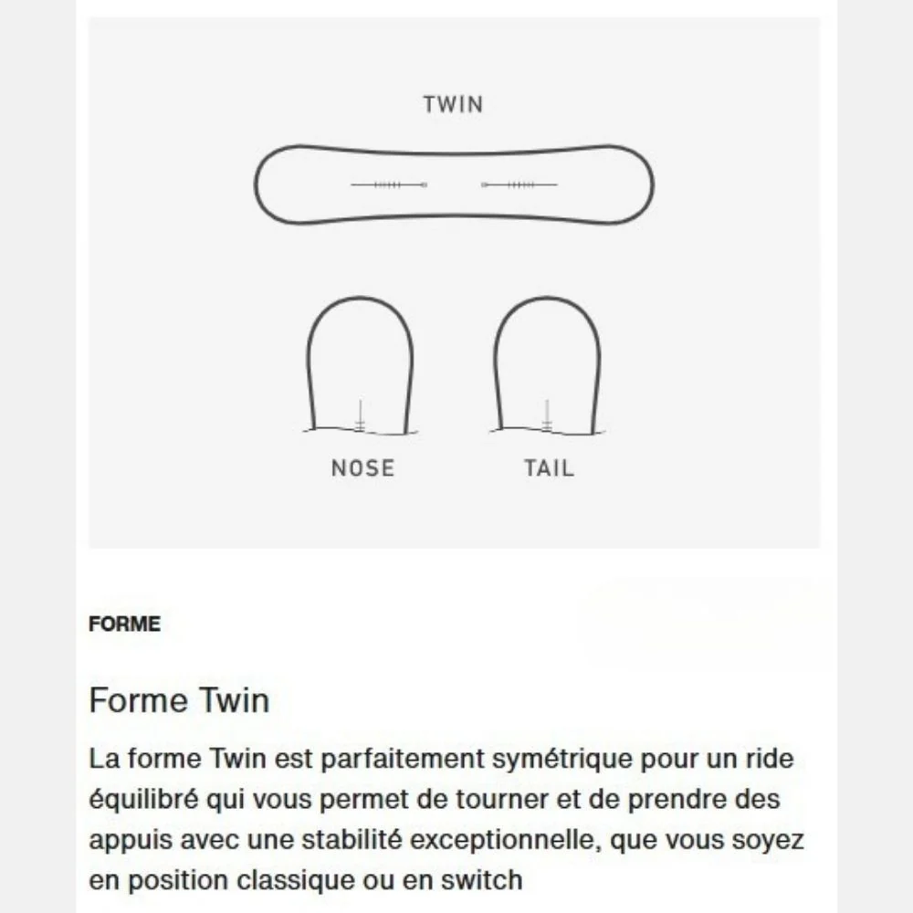 • Shape True Twin : ride symétrique en regular comme en switch.