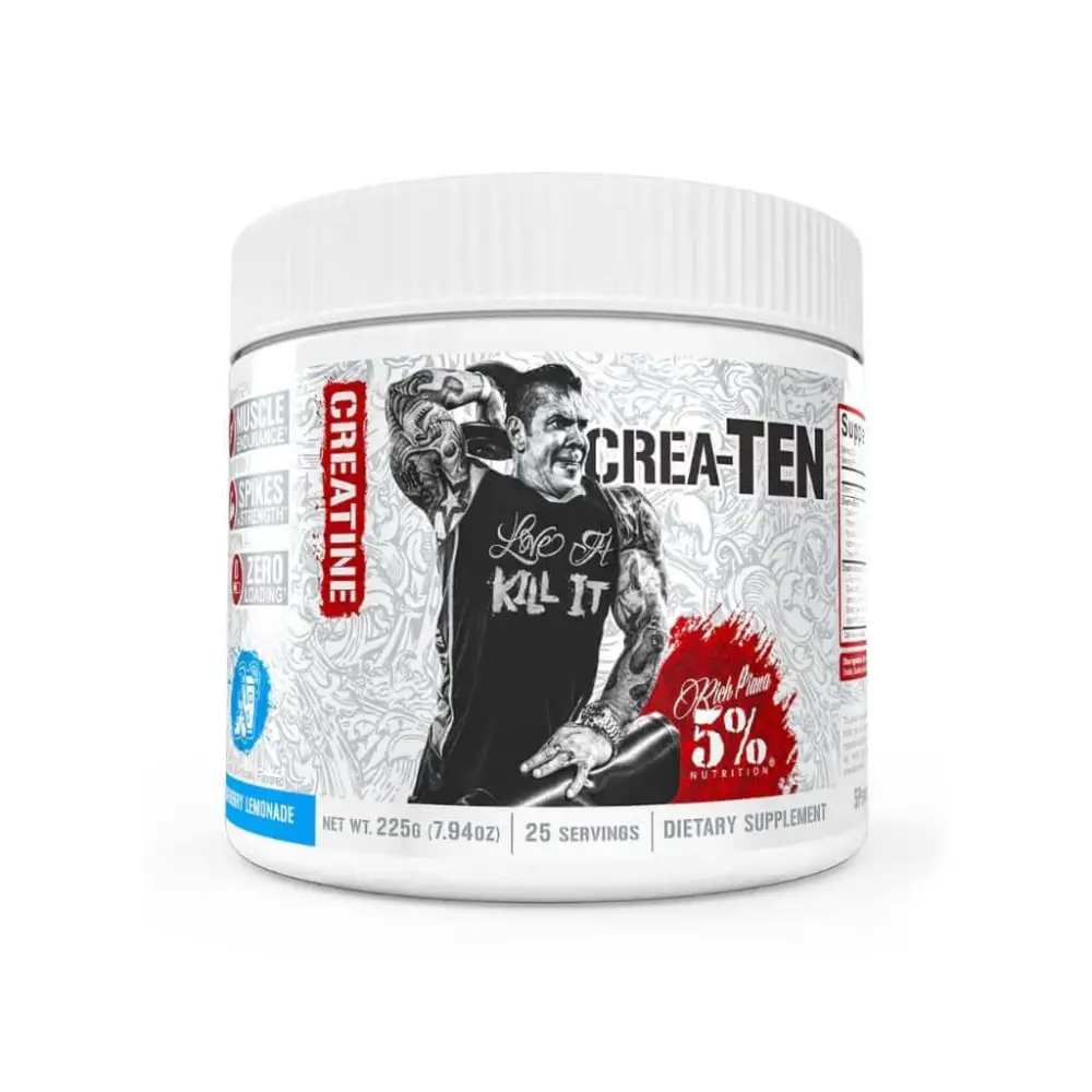 Crea-TEN est développé par 5% Nutrition, la marque fondée par Rich Piana, avec un objectif clair : offrir des formules puissantes et transparentes, sans compromis sur la qualité ou la performance. Chaque ingrédient est sélectionné pour sa pureté, son efficacité et sa biodisponibilité.