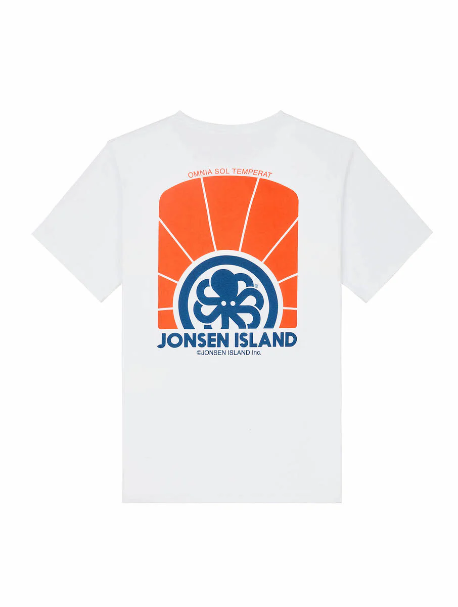 Décliné en blanc, le t-shirt OMNIA SOL gagne en contraste tout en gardant sa sobriété. L imprimé dos stylisé évoque l énergie solaire et l harmonie naturelle. Léger, lumineux et doux, c est un t-shirt à message, pensé pour tous les styles. Il incarne bien l esprit surf et graphique de Jonsen Island.