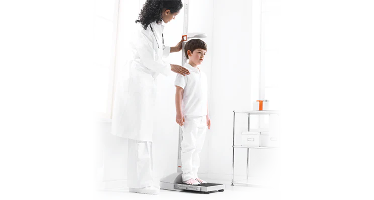 Suffisamment robuste pour assurer des résultats précis, tout en étant assez léger pour être facilement transporté, le Seca 877 présente toutes les qualités requises. Son revêtement antidérapant en caoutchouc à picots assure une sécurité totale