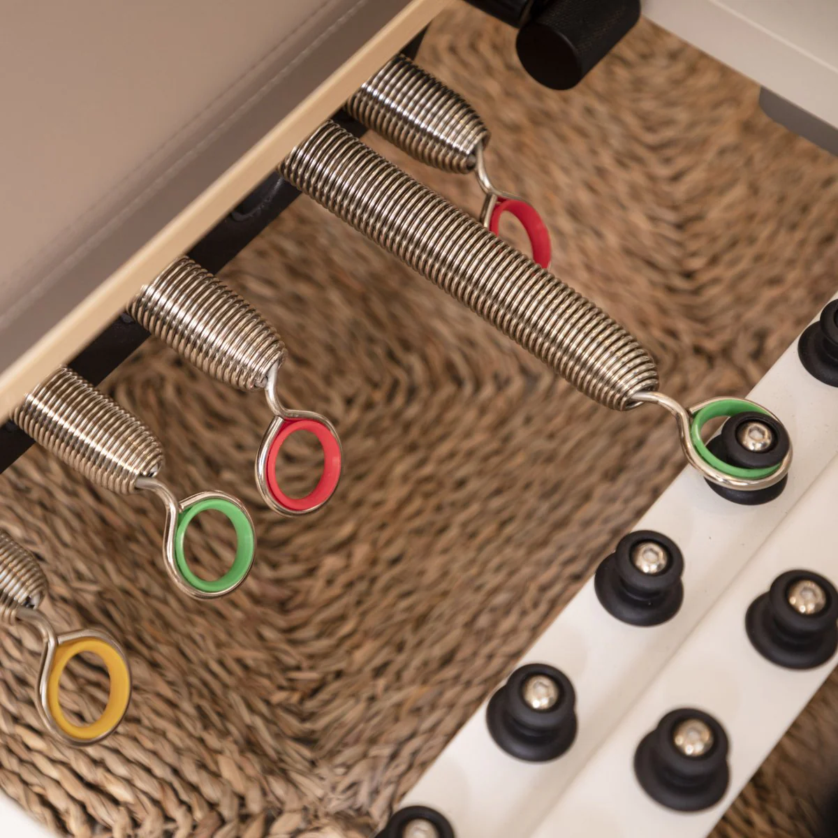 - Ressorts : 5 ressorts (2 rouges forts, 2 verts moyens, 1 jaune léger)