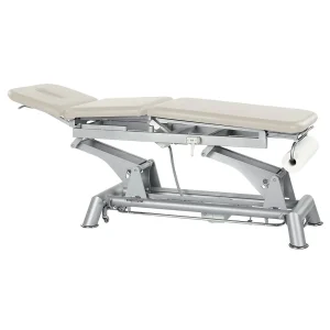 La table de massage Chagall neo à 3 plans est une table multifonction à hauteur variable assistée par deux vérins électriques et deux vérins à gaz. Cette table assure sécurité et confort au patient tout en conférant une grande liberté d’action au professionnel pour traitement, kinésithérapie et massage. Cette table permet une élévation rapide en 34 secondes.
