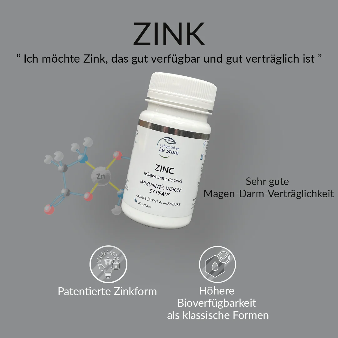Notre spécialité ZINC est un complément alimentaire qui apporte une forme brevetée de zinc : le bisglycinate de zinc. Sa biodisponibilité est supérieure à celle des autres formes (absorption 3,2 fois plus importante qu’avec de l’oxyde de zinc et du picolinate de zinc).
